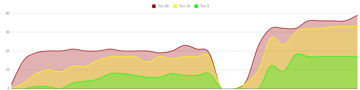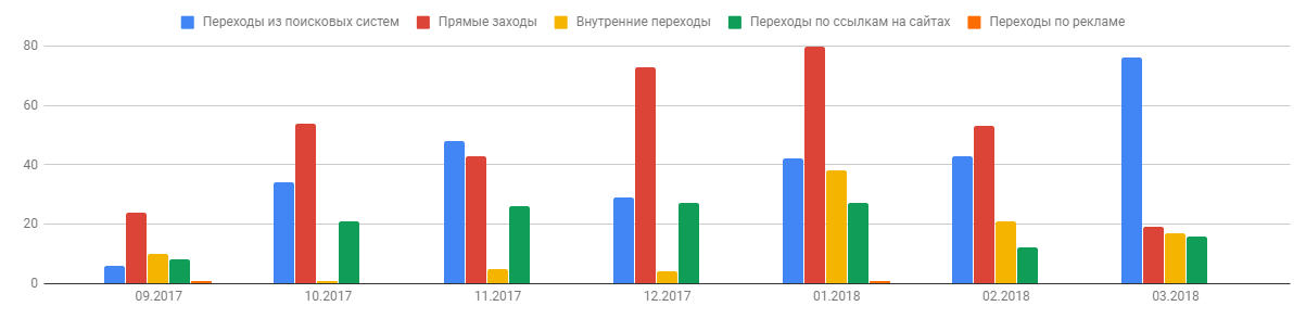 В последний месяц продвижения большая часть запросов находилась на топовых позициях. По некоторым запросам еще наблюдался рост позиций. Детальную картину роста и изменения позиций можно посмотреть на графике.