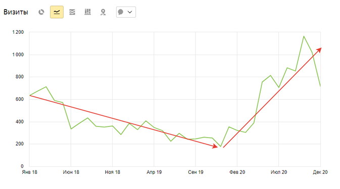 - В 2018 году из поисковых систем от 284 до 712 в месяц и за год 5684 визита;
