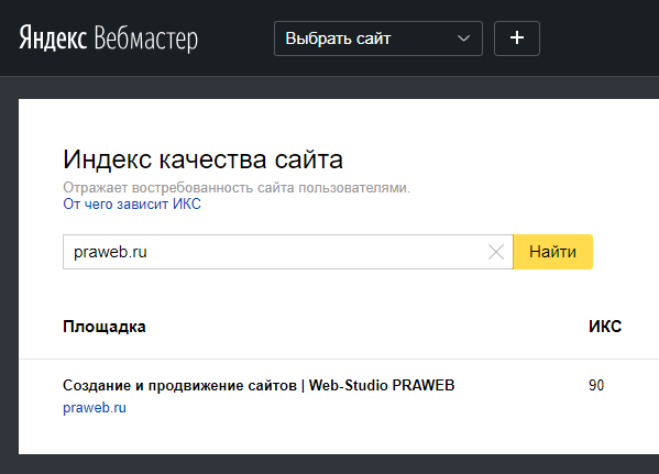2. По ссылке https://webmaster.yandex.ru/sqi/?host= можно посмотреть ИКС любого сайта, даже если он не добавле в ваш Вебмастер: