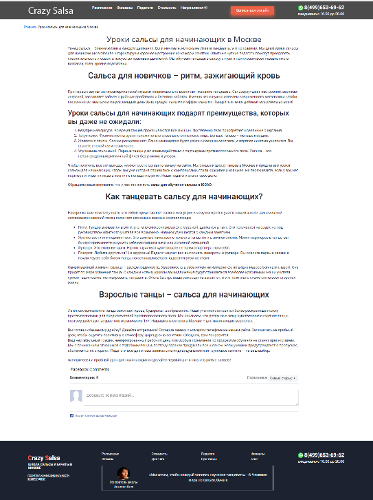 Сайт пришел к нам пустой и не интересный - не ожидаешь от "зажигательной сальсы" унылых текстов на белом фоне без медиа-контента.
