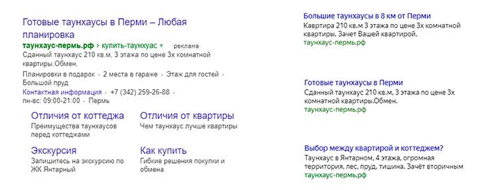 - По запросу «Купить таунхаус» мы показывали объявления сегменту «Площадь»: