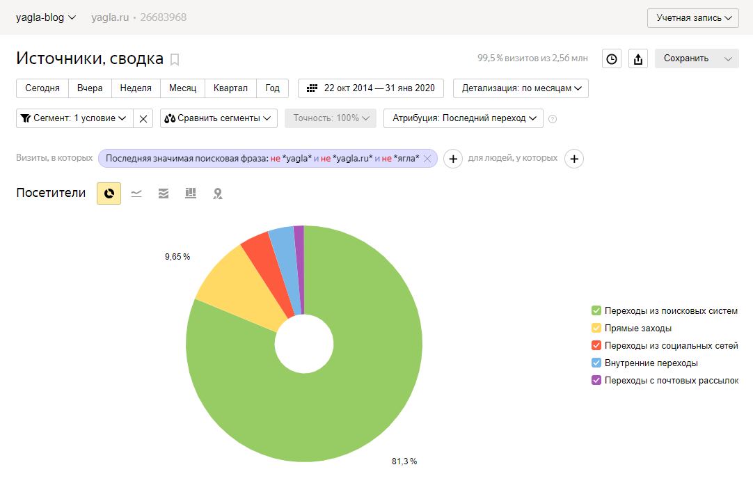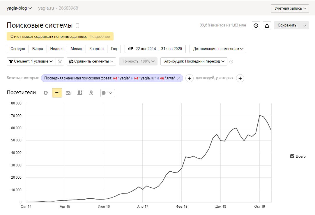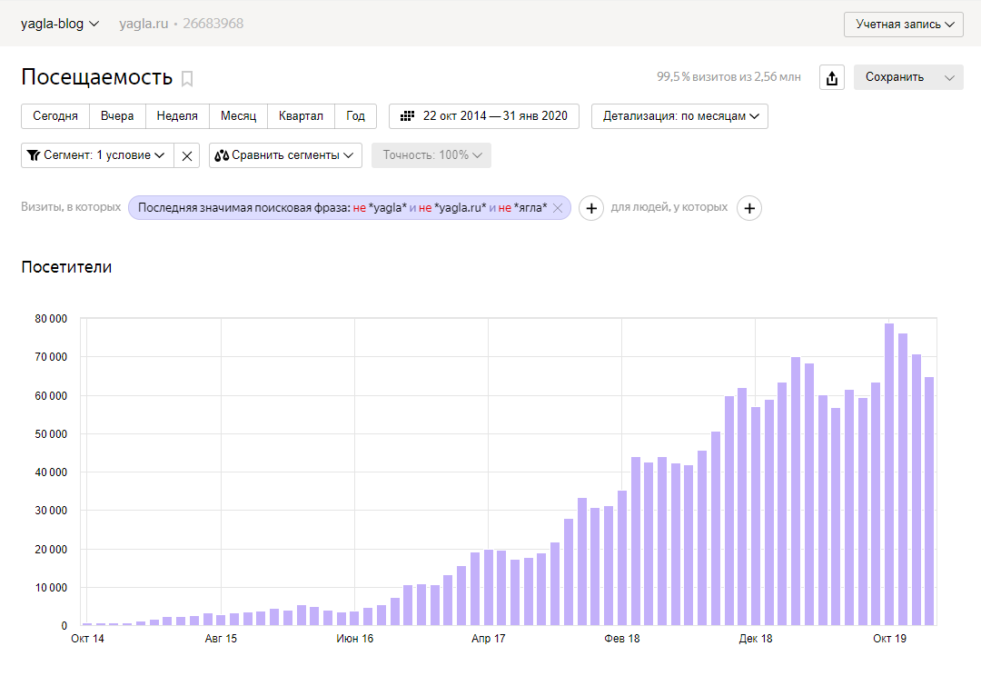 Да, это за вычетом брендовых запросов Yagla, Yagla.ru, Ягла и проч.