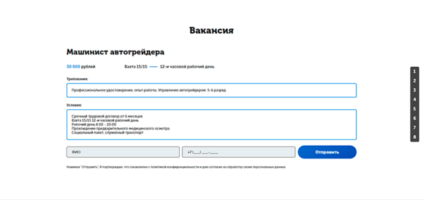 - Промоблок - дает понять соискателю, что он перешел на ресурс, где предлагают работу;