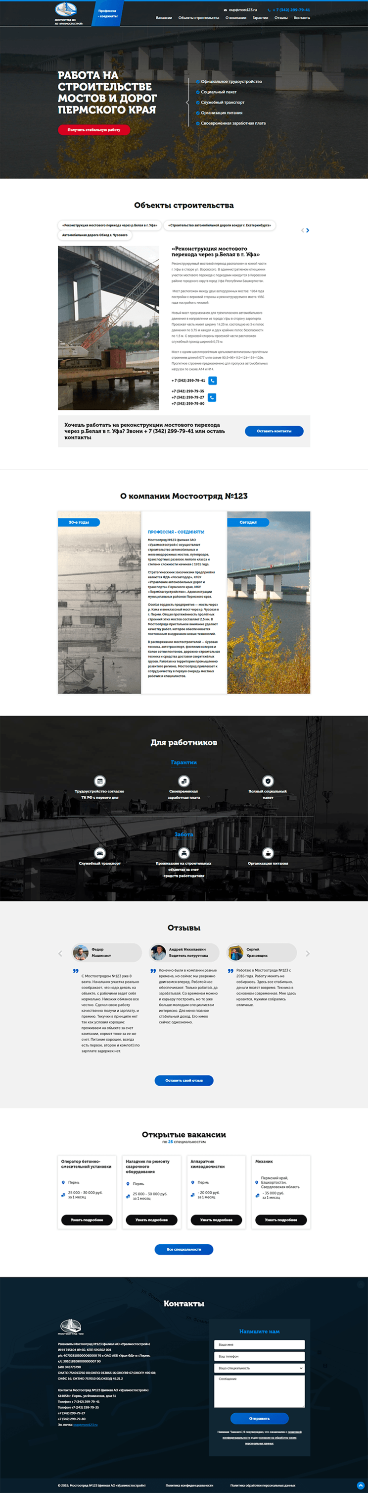 АО мостотряд № 123 (филиал ЗАО «Уралмостострой») - Предприятие осуществляет полный комплекс работ по строительству мостов, путепроводов и транспортных развязок любой категории сложности.